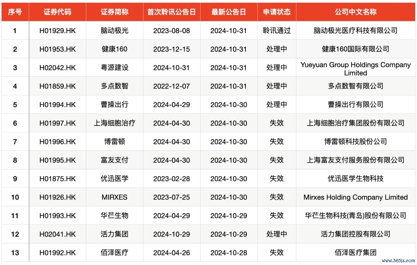 上周,港股有5家企业递交招股书,其中,Yueyuan Group Holdings Company Limited(粤源建设)、活力集团控股有限公司为首次递交;健康160国际有限公司、多点数智有限公司、曹操出行有限公司(简称“曹操出行”)为更新招股书。此外,脑动极光医疗科技有限公司已通过港交所聆讯。